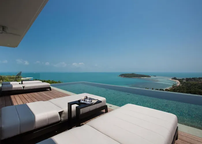 Villa Amylia Ruby, Excellence, World-Class Seaview Koh Samui ligt op circa 2 km van de Wat Plai Laem en beschikt over een massagekamer. De villa biedt mogelijkheden om minigolf in de omgeving, op circa 10-minuten rijafstand van Tropical Murphy Samui.